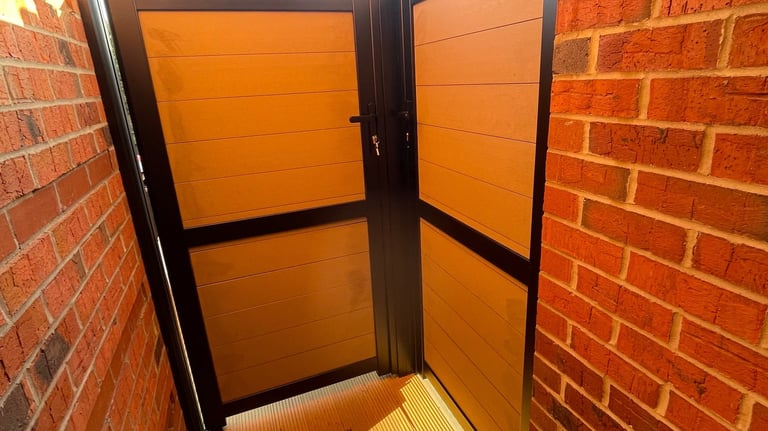 Gates are supplied with high-quality hinges, latches, locks, and all fixings needed for a reliable finish.